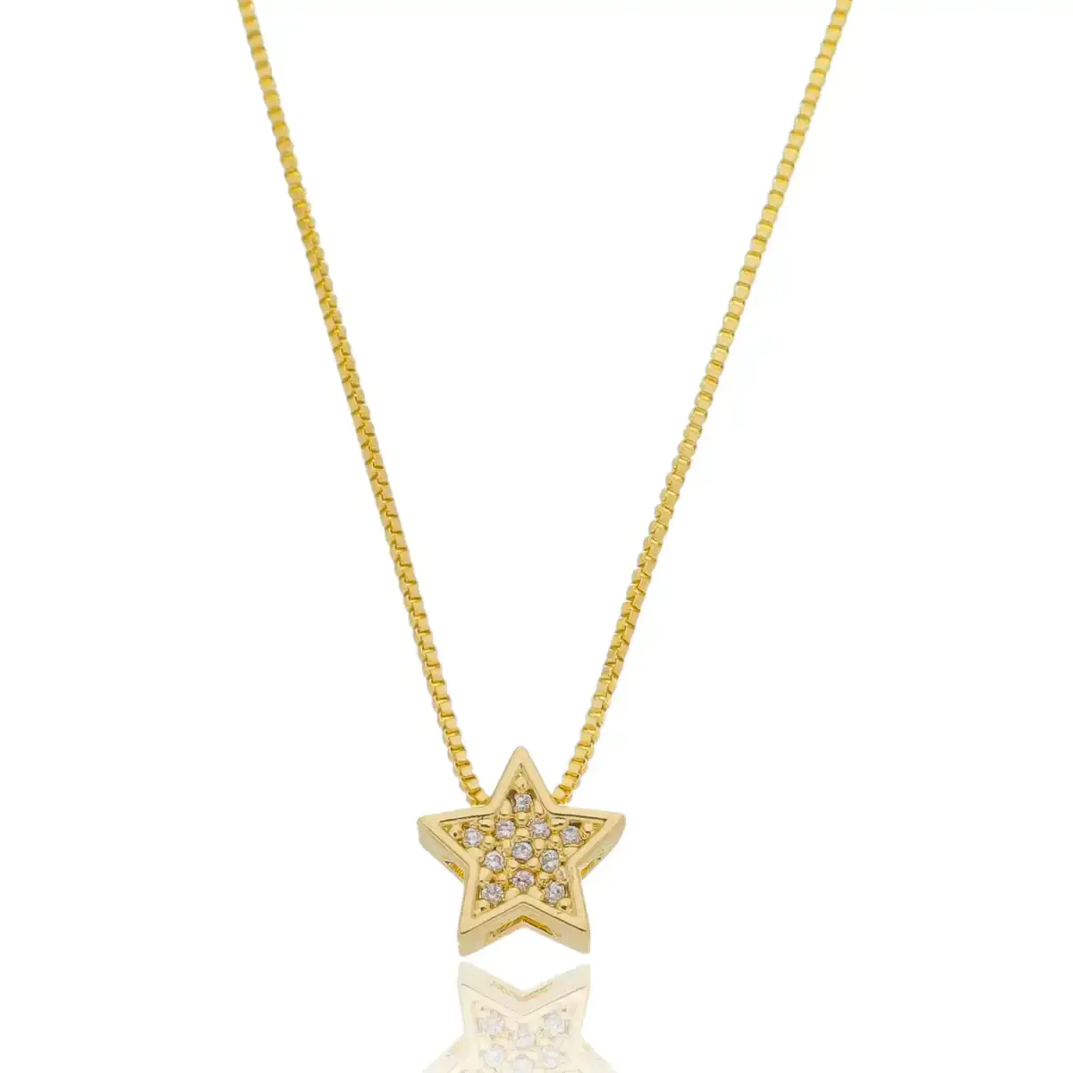 Colar Estrela Cravejado com Zircônias Banhado a ouro 18k