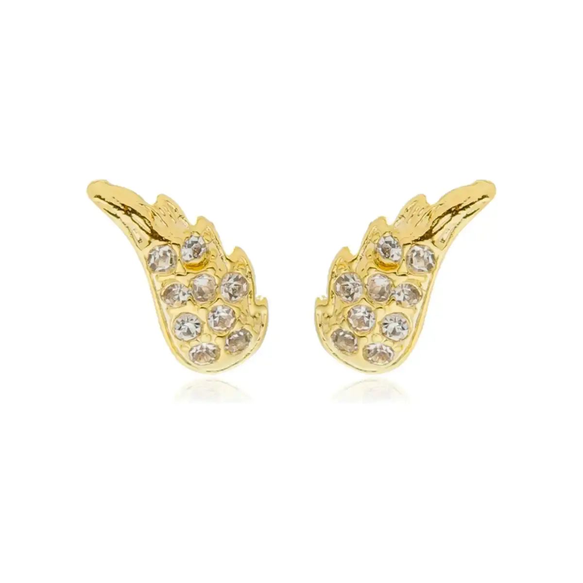 Brinco Asa com Zircônias banhado a ouro 18 K
