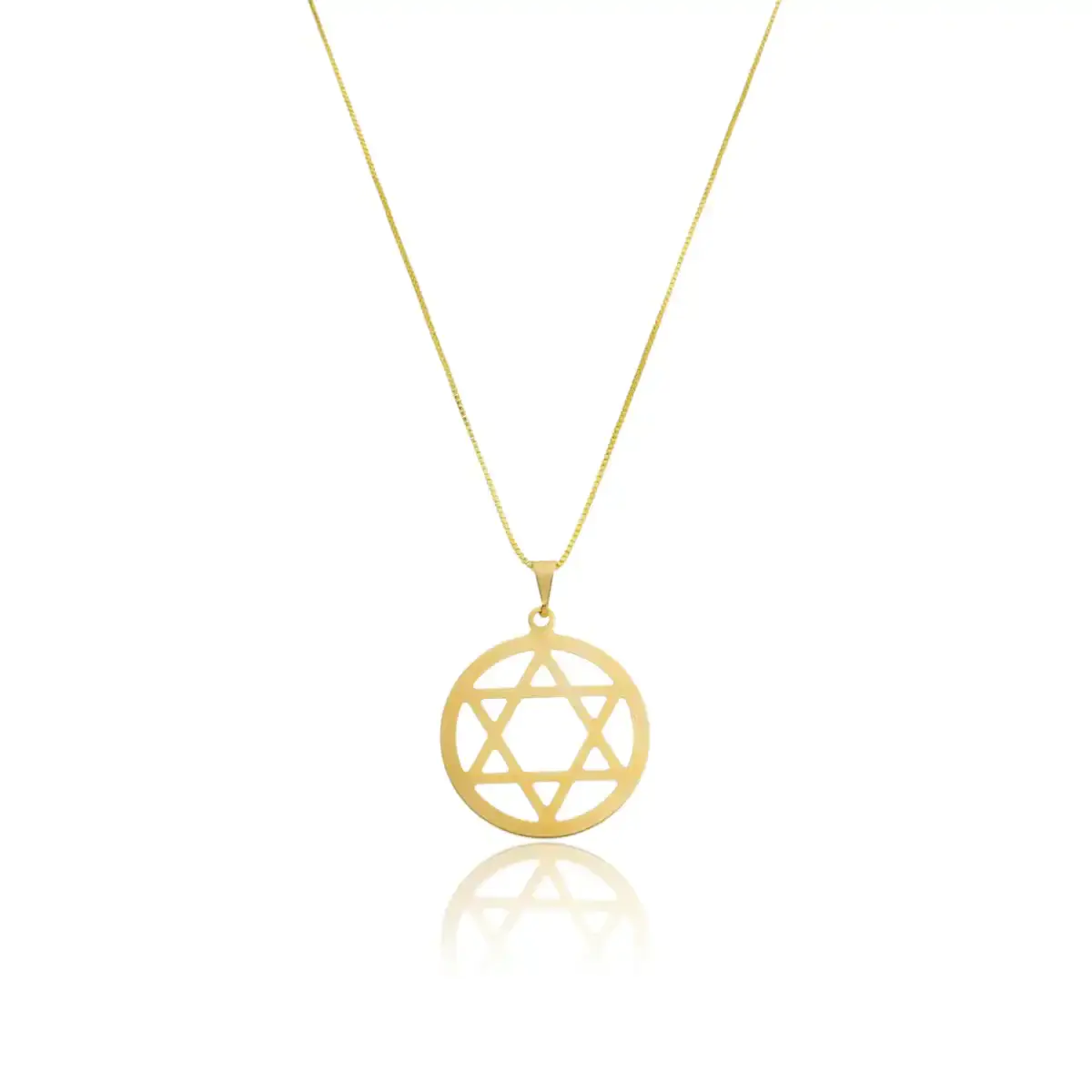 Colar Medalha Estrela de Davi Banhado a ouro 18k